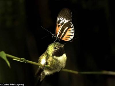 这只蝴蝶落在蜂鸟头上被撵走前,技术一流的摄影师费尔顿设法拍到这张完美照片 ...