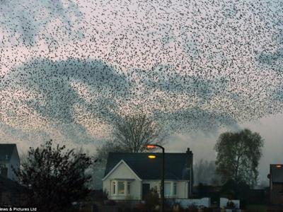 英国苏格兰边境小镇现数百万星椋鸟迁徙奇观