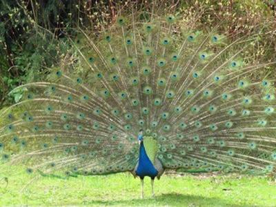 科学家发现雄孔雀炫耀美丽的羽毛时,低沉的说话声能吸引雌孔雀靠近,但是人类听不...
