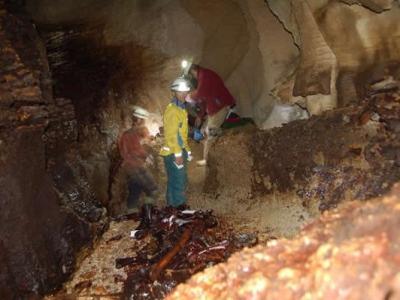 研究者在新西兰洞穴中考察 一支由来自阿德莱德大学古DNA中心、科罗拉多大学和怀...