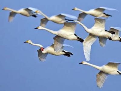 黄河三角洲自然保护区首发现蓝色环志大天鹅