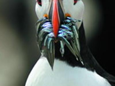 在饵料鱼匮乏时,包括叼了一嘴玉筋鱼的大西洋角嘴海雀在内的海鸟都会繁殖较少的后...