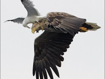 野生动物摄影师拍摄到海鸥“骑袭”海雕