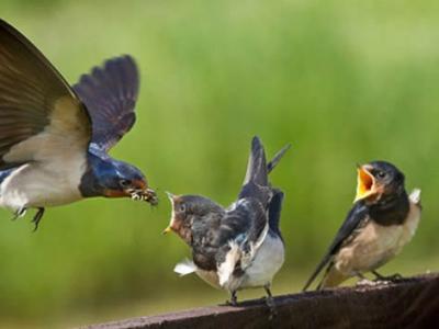 摄影师拍摄家燕空中喂食幼仔瞬间