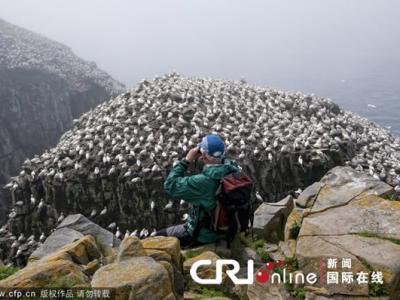 加拿大大量塘鹅悬崖边聚集产卵 场面壮观 加拿大大量塘鹅悬崖边聚集产卵 场面壮...