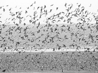十万迁徙候鸟鸭绿江口湿地“加油” 4月25日,成群的迁徙候鸟在辽宁丹东市鸭绿江...