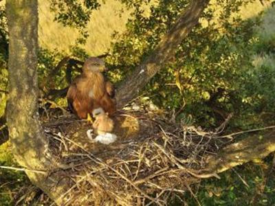 七天大的黑鸢偎依在装饰的鸢巢里寻求母亲的掩护 一则新的研究披露,某种特定的猛...