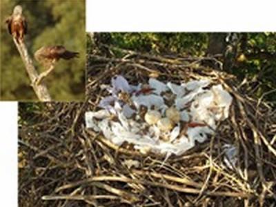 正处于壮年时期的黑鸢(小图)在它们的巢里堆放了许多杂物,宣告它们强壮。 (神...