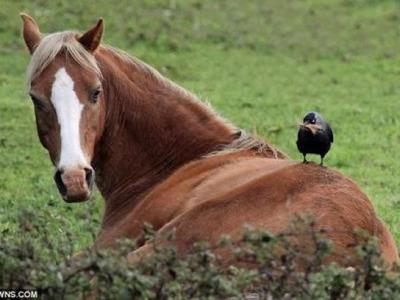 英国一只大胆乌鸦在马背上拔毛修缮鸟巢 (神秘的地球www.uux.cn)据《每日邮报》...