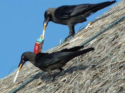 “抽烟”的乌鸦 “抽烟”的乌鸦 两名英国游客日前在马尔...