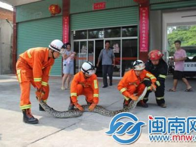 漳浦3米长蟒蛇进村偷鸡 体型太大吓走捕蛇人