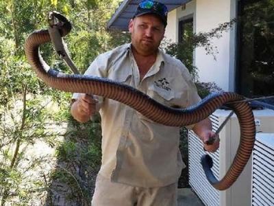 澳洲民宅惊现巨型毒蛇“红腹黑蛇” 专业