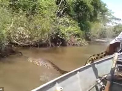 巴西渔民河中遇到“大肚巨蟒”强拉尾巴拖行