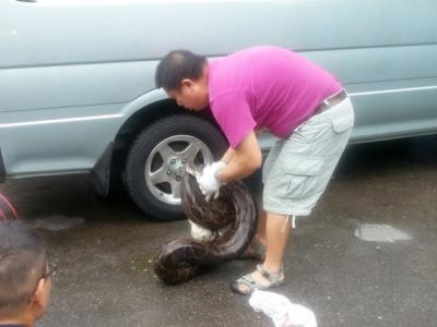 香港蛇王擒获5米长重达80斤的雌性大蟒蛇