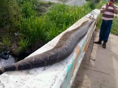 墨西哥塔巴斯科州村民打死一条巨蟒