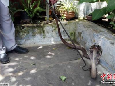 印度高温 蛇入民居避暑忙坏捕蛇人