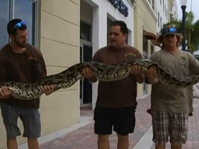 美国佛罗里达州4米巨蟒遭捕或被剥皮造奢