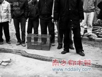 2011年深圳横岗安良社区一工地挖出3米多长大蟒蛇 (神秘的地球uux.cn)据南方都...