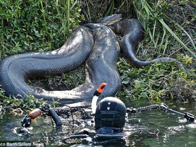 亚马逊河水蟒不主动攻击人,但非常凶恶。 大草原上的水蟒以凯门鳄为食 (神秘...