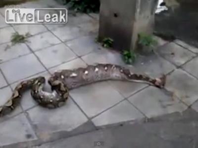恶心:泰国一条大蟒蛇不消化突出一只狗