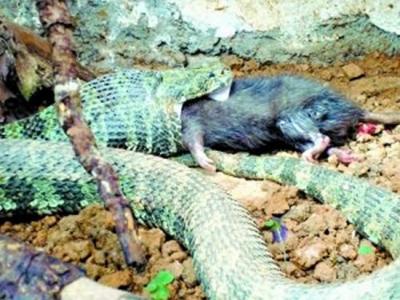 莽山烙铁头蛇爱吃老鼠 继2007年在韶关发现广东第一条雄性“蛇中熊猫”——莽山烙...