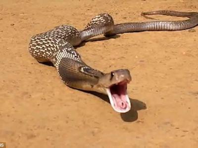 印度“贪吃眼镜蛇”偷吃被撞破 连吐7颗鸡