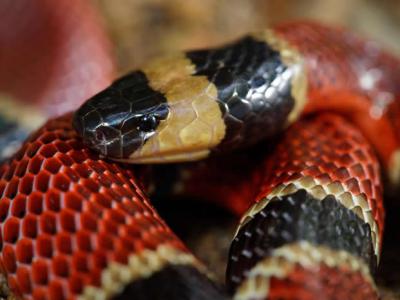 中美珊瑚蛇(Micrurus nigrocinctus)通常吃小型蛇类,包括一...