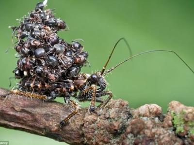 食虫蝽象身背死蚂蚁抵挡掠食者