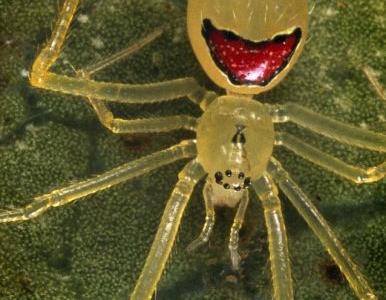 夏威夷群岛雨林拍到的笑脸蛛 笑脸蛛的身长只有几毫米,据信对人类无害 在夏...