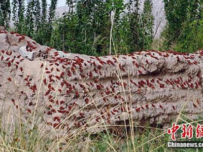 新疆和硕县红蝶谷中无数红蝴蝶群集 新疆和硕县红蝶谷中无数红蝴蝶群集 新疆...
