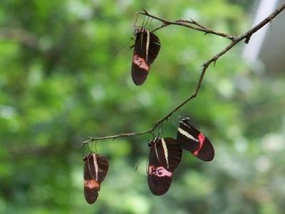 为什么蝴蝶总爱一起睡 每当夜晚睡觉的时候来临,红色邮差蝶(Heliconius erato)...