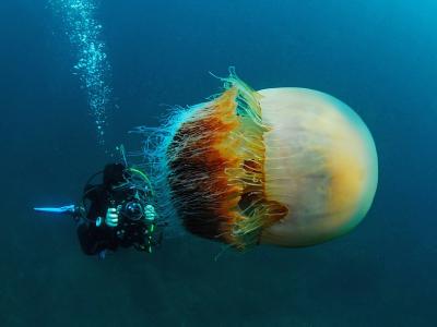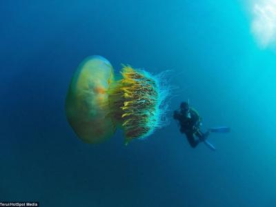 摄影师在日本福井省越前海岸潜水拍摄到巨型“野村水母”(神秘的地球配图) ...