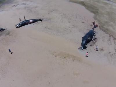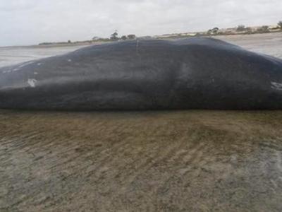 抹香鲸在澳洲南澳省搁浅 民众航拍尸体惨况