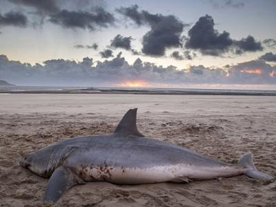 灰鲭鲨搁浅英国沙滩 民众剥牙作纪念