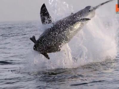 南非电影制作人用假海豹做诱饵捕捉大白鲨背水一跳的精彩瞬间 (神秘的地球报道)...