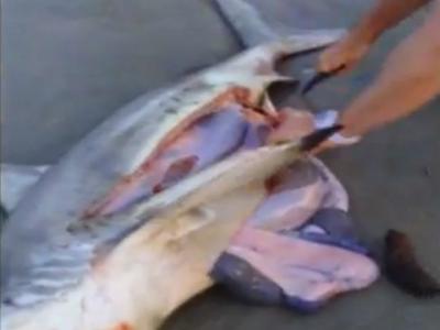 怀孕母鲨鱼搁浅死亡 海边游客抢救肚里的