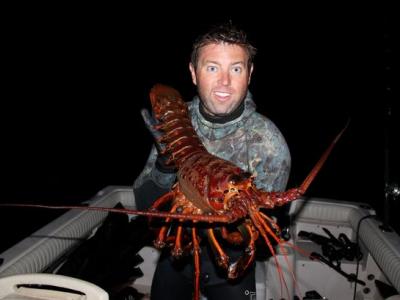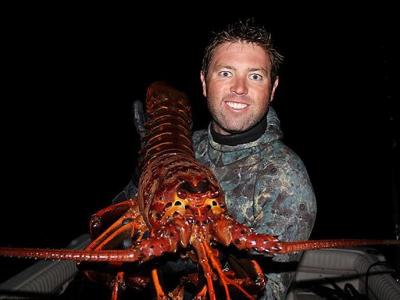 美国生物学家夜间潜水捞到一只巨大的太平洋龙虾 这只重达12磅的大龙虾是Forre...