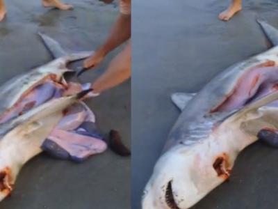 泳客剖开怀孕鲨鱼的腹部 泳客将鲨鱼宝宝取出 好心人其后将3条宝宝送回大海...