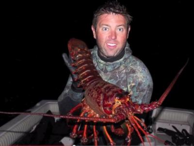 美国加州渔民捕获巨型龙虾后放生