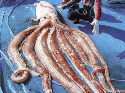 日本渔民捕获的7.6米长巨型鱿鱼