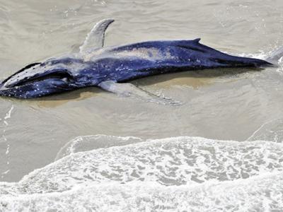 体长约12米的座头鲸尸体冲上日本茨城县鹿