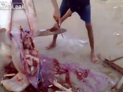 菲律宾渔民捕获巨型虎鲨 剖腹后骇然发现