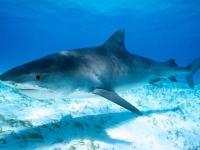 菲律宾渔民捕获巨型虎鲨,剖腹后骇然发现肚内竟有一个人头。图为一条虎鲨。 (神...