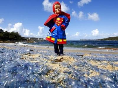 澳洲悉尼北部海滩出现数以万计的蓝瓶僧帽