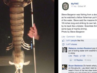 美国佛罗里达州钓出一只疑似濑尿虾的巨型