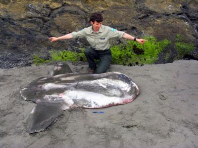 美国一群野营的小孩在沙滩上发现长达2米的巨型翻车鲀尸体(神秘的地球配图) (...