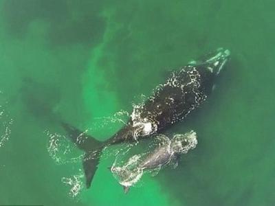 阿根廷无人机在太平洋上空拍到一对南露脊