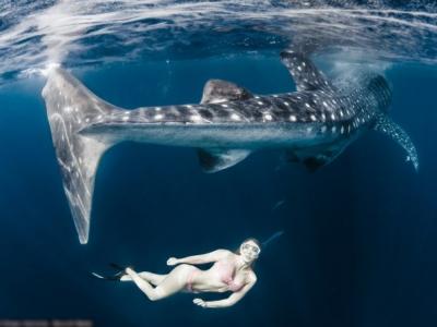 世界最性感女运动员大海中与鲸鲨等“巨无
