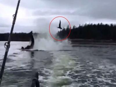美国阿拉斯加杀人鲸摆尾 海狮被抛起20呎