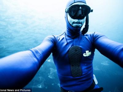 墨西哥潜水员在巴哈海岸18米深海与魔鬼鱼玩自拍 (神秘的地球报道)据环球网(实...